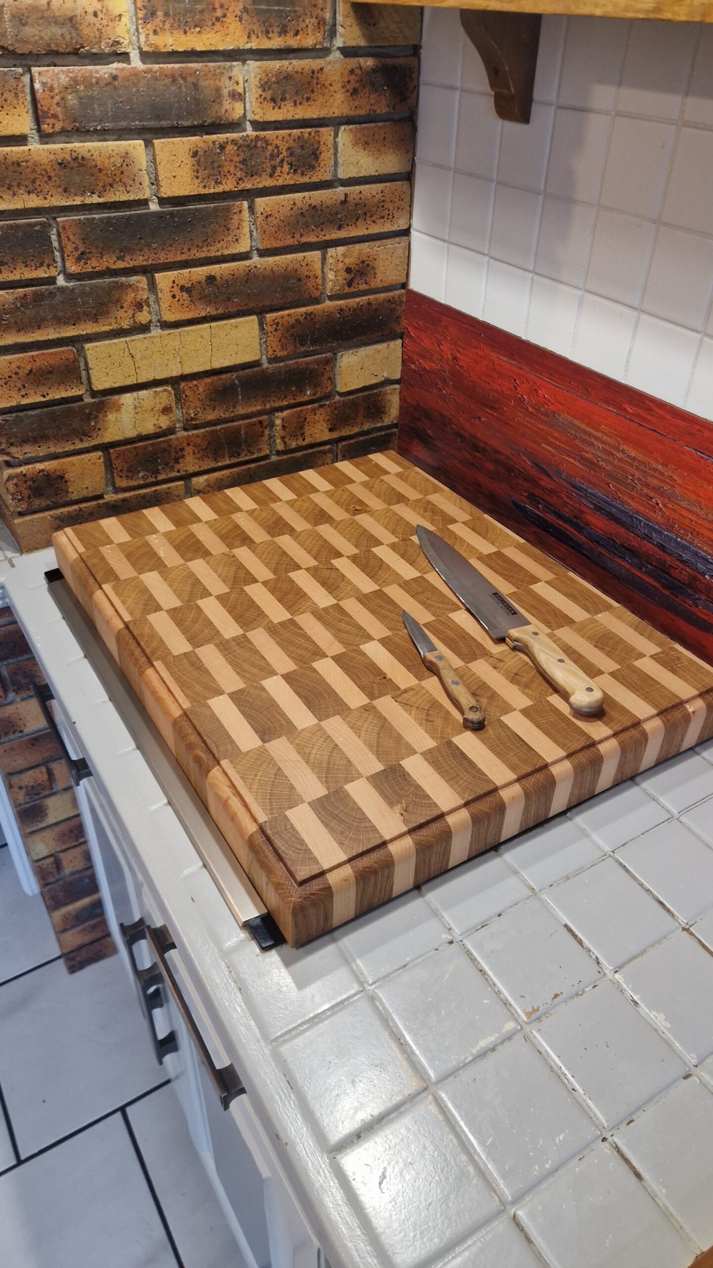 Assemblage en bout de grain (end grain) : protège vos couteaux et prolonge leur durée de vie.